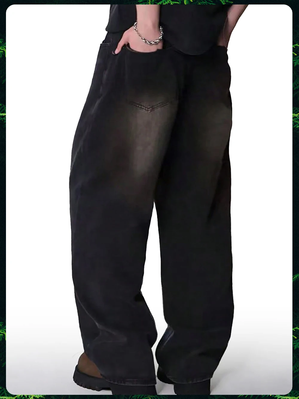 Style: Daily Casual Jeans、Streetwear JeansWash:Can be hand washed or machine washed, dry cleaning is not recommendedMaterial: Denim(Cotton)70 %,polyester 24%,viscose 6%(black、gray)Denim(Cotton)56 %,polyester 33%,viscose 11% (retro blue,light blue)Features: Baggy Wide-Leg JeansOccassion:Step into effortless edge with these oversized black acid-wash jeans—the ultimate staple for your streetwear rotation. Crafted from soft, durable denim, they feature a faded, smoky gray gradient wash that adds vintage Y2K/grunge character, plus a relaxed wide-leg fit that drapes perfectly over chunky boots.Designed for comfort and style: deep side pockets, a classic button closure, and subtle tonal stitching keep the look sleek while prioritizing function. Whether you’re layering with an oversized tee or cropped hoodie, these jeans balance laid-back cool with statement-making texture.Package listing:1×men jeans(Excluding accessories and pendants)♥ FOLLOW US!You will get an extra funs discount(extra1%~2% off)!Thank you! ♥